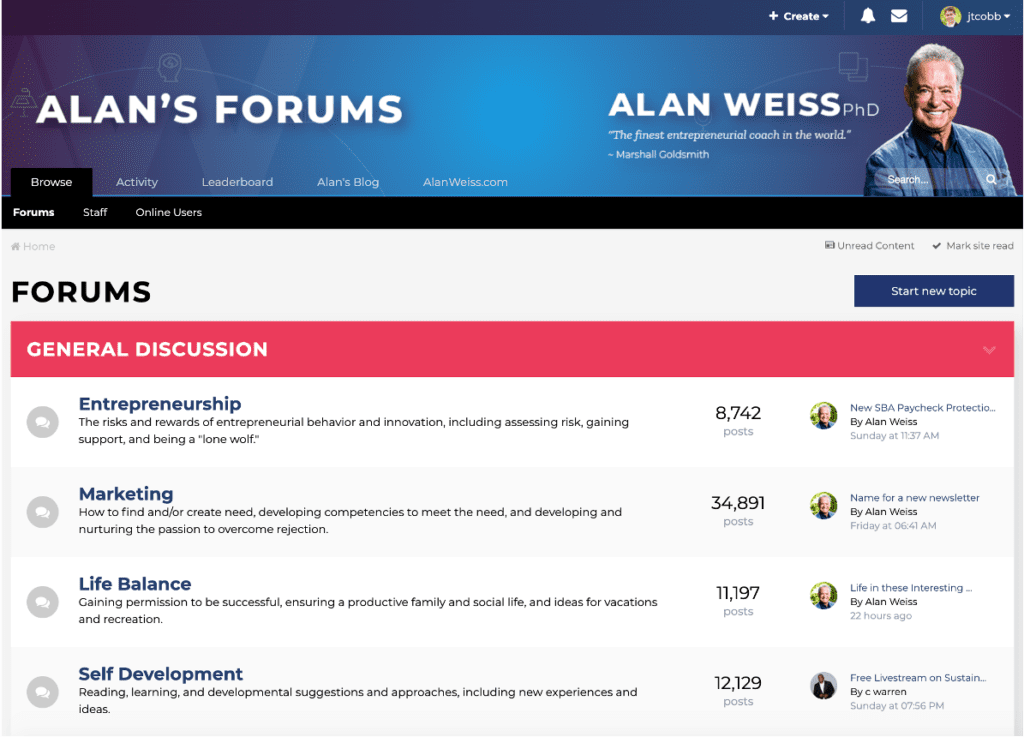 One of the earliest examples for me, a community that I certainly participated in a lot more in the past than I do now because it was just so highly relevant to me at a particular point in time, and this is Alan’s Forums from Alan Weiss.