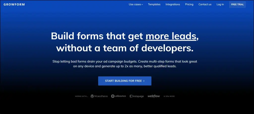 | Growform | Multi-step forms for advanced lead capture and segmentation | Starts at $35/month, 7-day free trial |