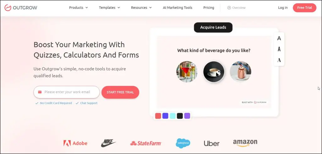 | Outgrow | Interactive calculators, polls, and quizzes | Starts at $14/month, 7-day free trial |