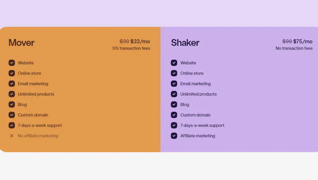 | Robust webinar hosting capabilities | Transaction fee on Mover plan |