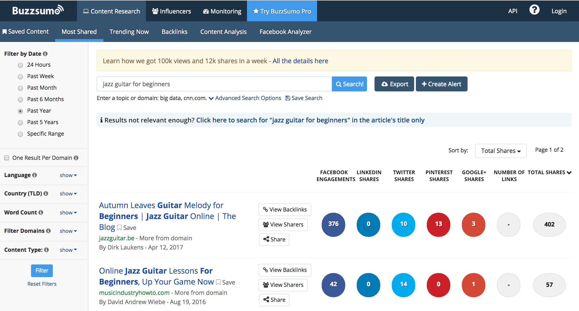 - Hundreds, if not thousands, of Facebook likes on Buzzsumo