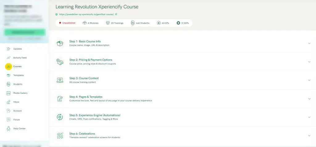 Courses are the heart of Xperiencify and everything else revolves around them. Whether you’re building a challenge, a coaching offer, or a membership, you’ll do it through the Courses section.